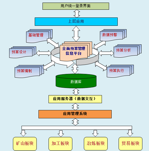 多維預(yù)算管理信息系統(tǒng)由系統(tǒng)平臺(tái)、預(yù)算模型、預(yù)算管理、預(yù)算執(zhí)行、數(shù)據(jù)中心組成,具備預(yù)算編制、預(yù)算執(zhí)行、預(yù)算查詢、預(yù)算分析、預(yù)警分析等功能,實(shí)現(xiàn)企業(yè)預(yù)算編制、審核責(zé)任權(quán)限的流程控制,達(dá)到預(yù)算指標(biāo)的層層分解和匯總,同時(shí)具備公式解析、審計(jì)追溯等便利功能,便于使用者核實(shí)數(shù)據(jù)來源與真實(shí)性,滿足預(yù)算指標(biāo)與實(shí)際完成值的對(duì)比和分析。